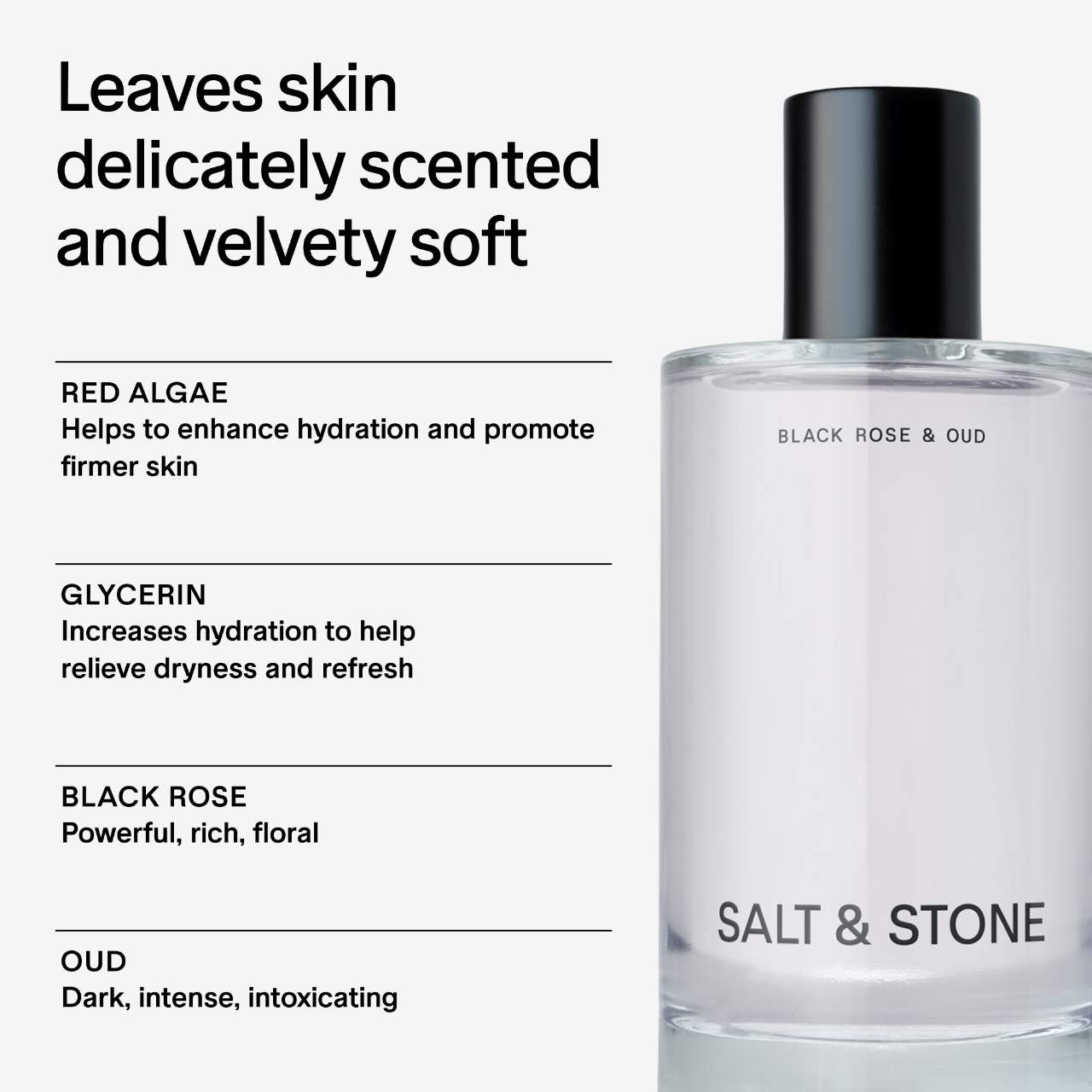 What Else You Need to Know: Discover an intoxicating and centering body mist in SALT & STONE’s signature scent, Black Rose & Oud. It’s infused with glycerin and red algae to leave skin feeling soft and hydrated. Immerse yourself in a sensorial experience, layering each product to create a complete body care routine in your favorite fragrance.