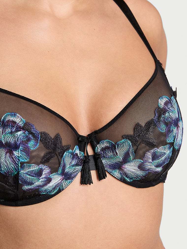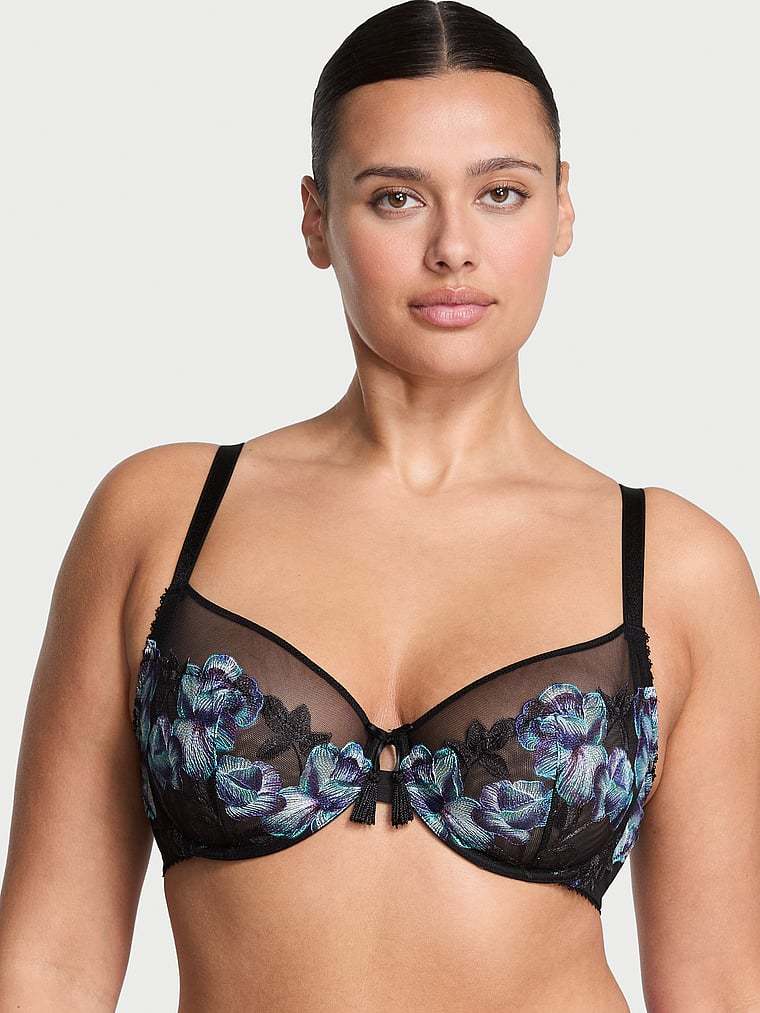 Richly hued, moody blooms are artfully embroidered on sheer tulle mesh on our popular, full-cup Bra—featuring a 3-piece construction that provides extra support and coverage for larger cup sizes.