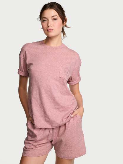 Discover an all-cotton essential Set you'll wonder how you lived without. On top, a soft, short-sleeved Tee, while the matching drawstring Shorts feature a foldover waistband with our signature logo elastic.