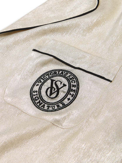 We've upgraded your favorite satin pajamas with a special technique for a unique, shimmery finish*. The long-sleeve top features a chest pocket with logo embroidery.